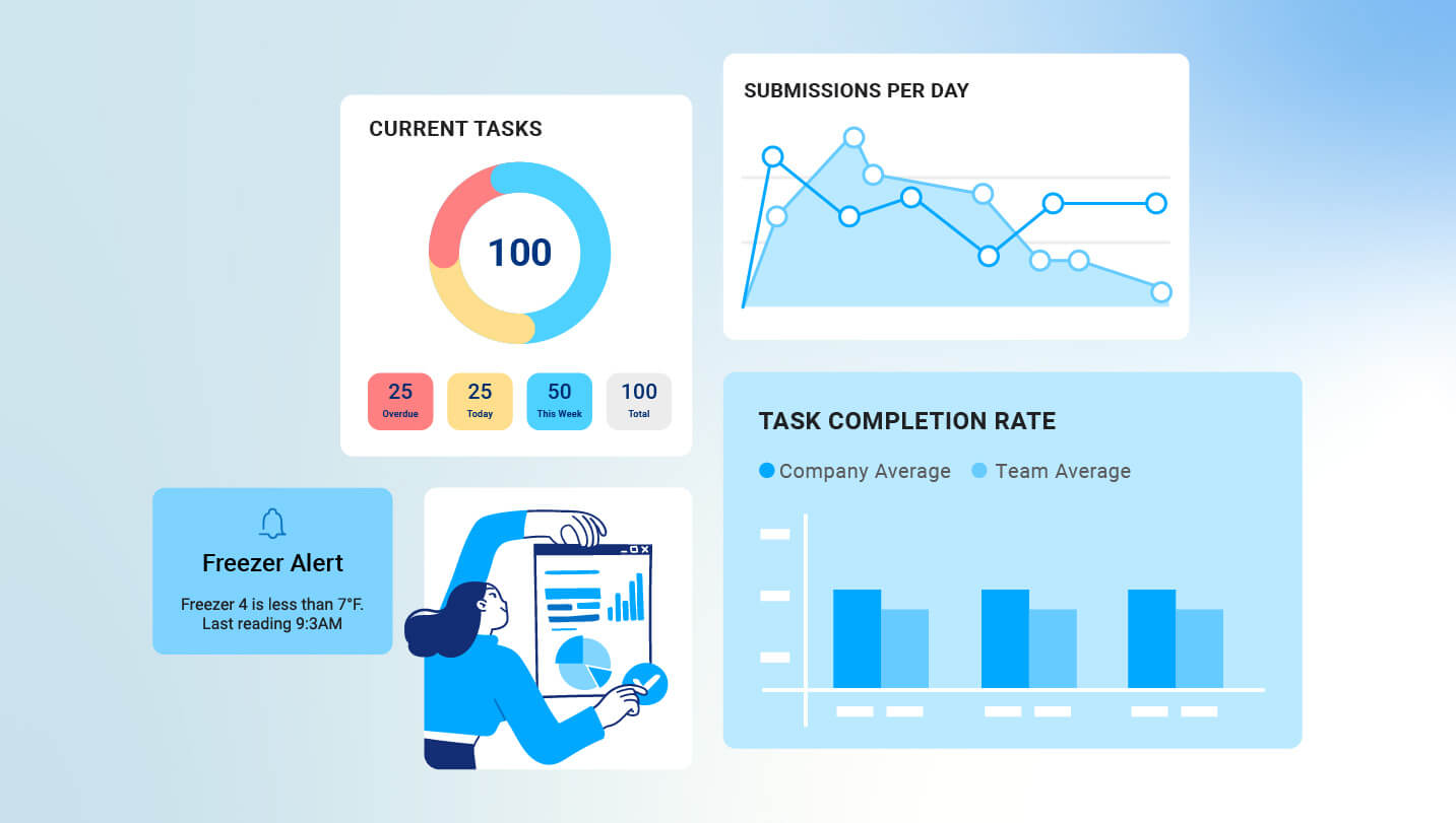 The right task management platform puts data front and center in its product. For example, Zenput offers ready-to-use reports that instantly surface what was completed (or wasn’t), and it connects with BI tools to reveal deeper patterns and risks. With visibility into near-due and at-risk tasks, managers can coach earlier and prevent small misses from turning into customer-experience problems or compliance failures.